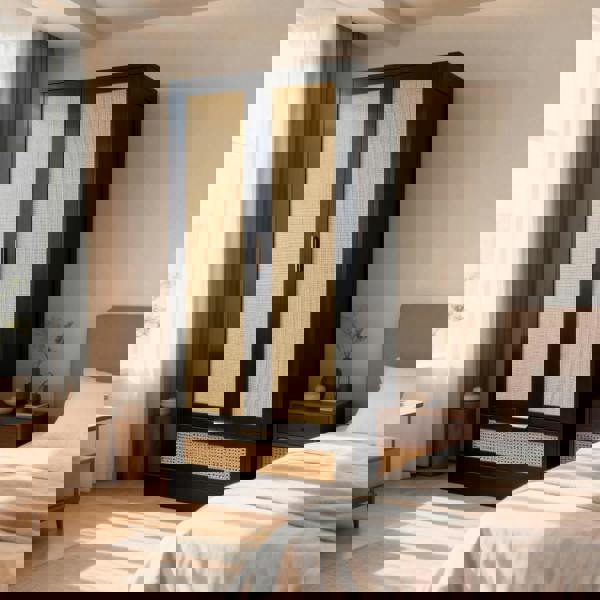 This 2-door wardrobe combines a natural rattan look with practical everyday storage, making it a considered choice for bedrooms or living rooms. PE rattan door panels introduce warm texture and a relaxed finish that suits modern, boho, or Scandinavian-style interiors.