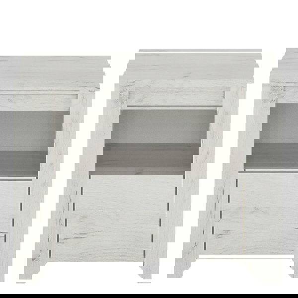 1 Drawer Bedside Cabinet. This beautifull bedroom collection is contemporay and stylish and suitable for all age groups, finished in a modern hard wearing white crafted Oak melamine. Stylish little cabinet with one drawer, and open shelf for magazines.