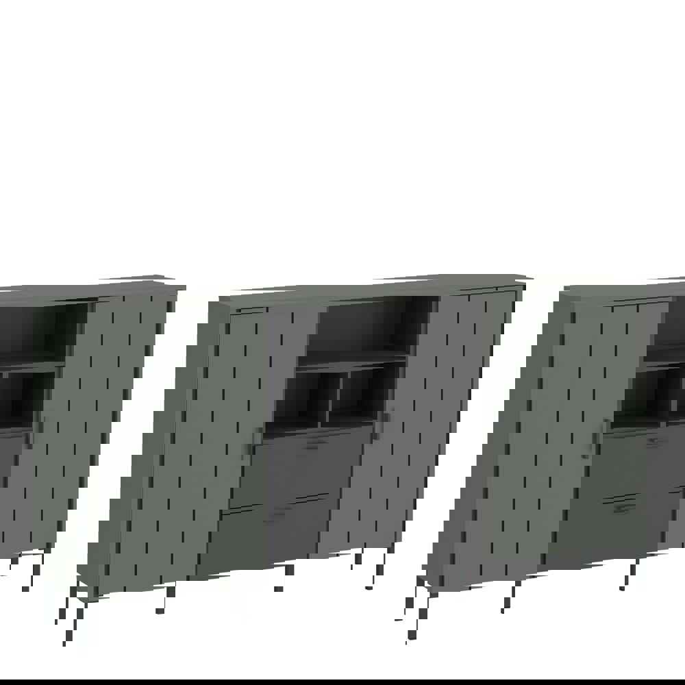 Enhance your home with the Arundel Grey Green 2 Door 2 Drawer Sideboard. Featuring a chic grey-green shade and crafted from durable chipboard, it offers both style and function. Spacious drawers with full-extension ball-bearing guides and soft-close doors ensure smooth operation. High metal legs add a modern touch, complementing various interior styles from boho to vintage. Perfect for living or dining rooms, it blends practical storage with timeless design.