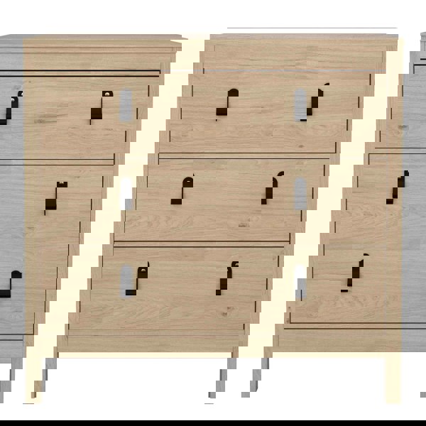 Enhance your bedroom with the stylish Barcelona Chest. Featuring a Jackson Hickory Oak effect finish, this chest offers three spacious drawers for ample storage. Each drawer is equipped with leather strap handles and smooth gliding runners, ensuring easy access. Combining elegance and practicality, the Barcelona Chest is a perfect addition to any contemporary bedroom.