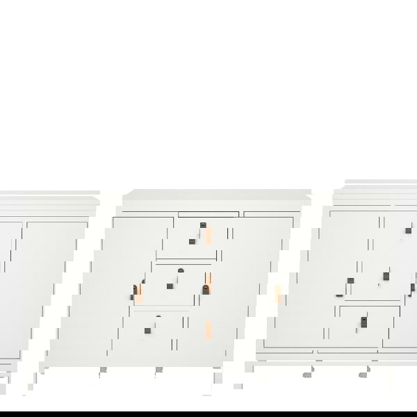 A modern large sideboard inclduing plenty of storage in a striking design complete with brown leather tab handles, also available in contrasting matt black