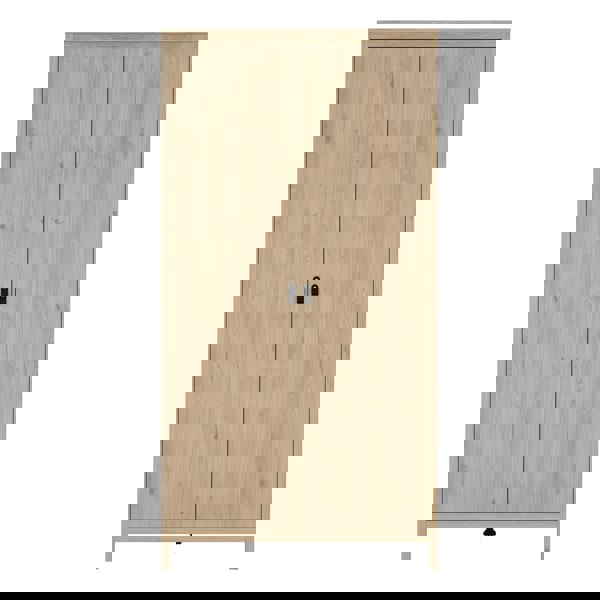 Transform your bedroom with the elegant Barcelona Wardrobe. Featuring a Jackson Hickory Oak effect finish, this wardrobe offers ample storage space behind its two doors. Inside, you'll find a spacious hanging area and shelves, perfect for organizing your clothing and accessories. With leather strap handles and a stylish design, the Barcelona Wardrobe combines functionality and sophistication, making it an ideal addition to any contemporary bedroom.