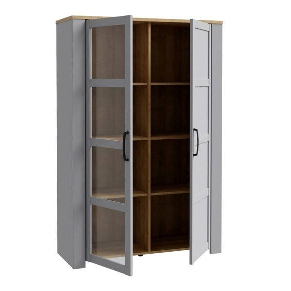 The Bohol 2-Door Display Cabinet blends rustic charm with modern functionality. With black handles, soft-close doors, and LED lighting, it offers both elegance and practicality. Available in Navy & Oak or White & Oak, this stylish cabinet is designed to be a standout feature in any living space.