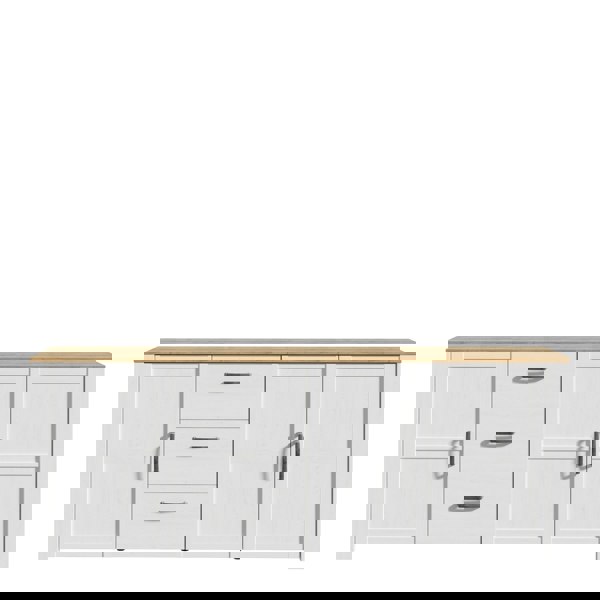 The Bohol collection draws inspiration from its timeless charm and rustic style, embracing its simplicity and natural elegance. What truly sets this collection apart from others is its exquisite decor - featuring three colourways with an Oak finish. The subtle elegance of the light Riviera Oak contributes by adding a focal point to each piece. Also featuring black handles with soft close doors, making it truly stand out in any living space. Available in a White & Oak, Grey & Oak or Navy & Oak.