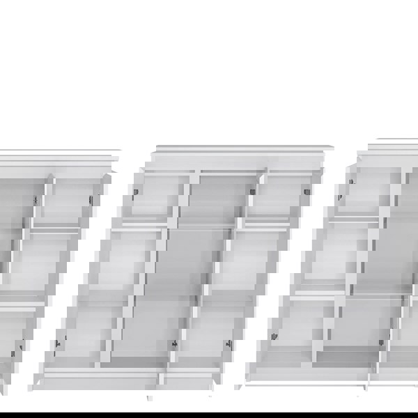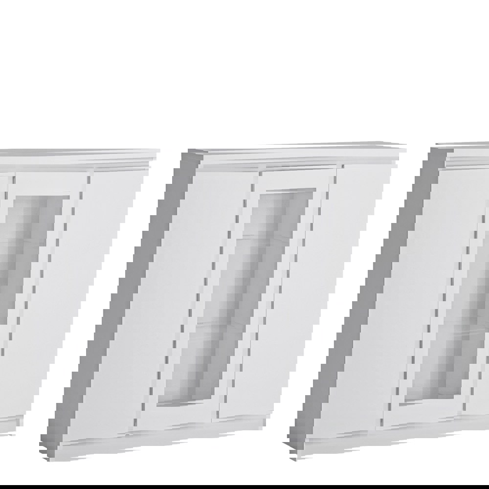 The original chest of drawers with a glass front with a geometric shape is a nod to elegance combined with modernity, as well as a lot of practical solutions. The glazed front of the chest of drawers is made of tempered safety glass . And the shelves behind the glass front can be additionally illuminated by purchasing optional lighting , thus allowing yourself to relax in the evening in a beautiful environment. The chest of drawers from the Fribo collection has been equipped with a modern handle-free system. The furniture is made of laminated chipboard, resistant to moisture, scratches, damage and high temperature. The program is available in two color versions: Alpine White and Golden Ribbeck Oak.