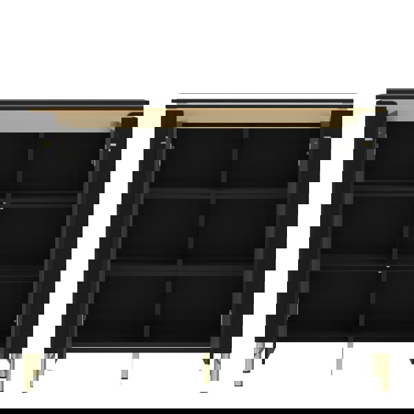 Enhance your space with the Genoa Black and Gold 2 Door Sideboard. Featuring matte black and gold accents, it offers stylish storage with quiet-close doors, spacious shelves, and LED lighting. Ideal for classic, modern, or glamour interiors.