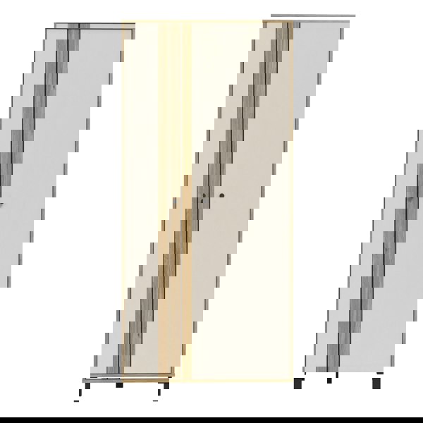 Enhance your space with the Grafton 2 Door Wardrobe in Cream and Oak. Industrial design, Mauvella oak/Sandy finish, clothes rail and shelves, stylish fluted insert, soft-closing system, and stable wall mounting.
