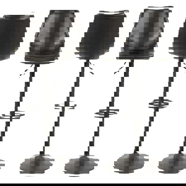Enhance your seating experience with our sleek bar stool, designed with a vintage black finish and adorned with cream and zigzag stitching for a touch of elegance. The robust matte black steel base features a gas lift and swivel function, blending functionality with a modern aesthetic. Only one supplied.