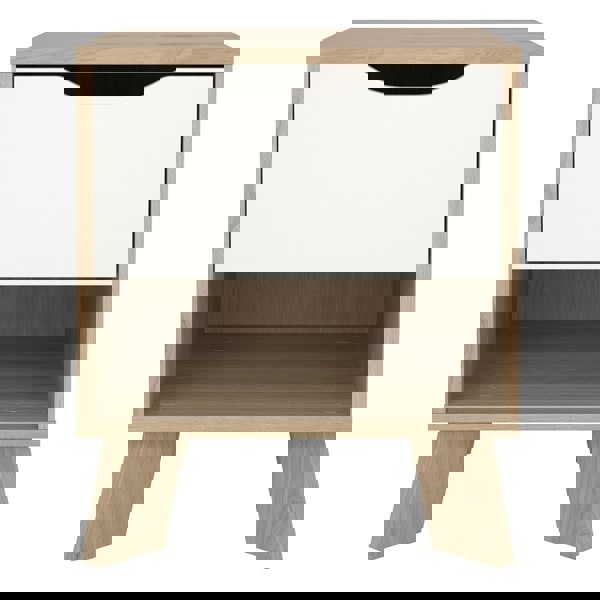 The Ikast Nightstand features a single drawer in Jackson Hickory and White. This nightstand seamlessly blends modern design with vibrant color accents, offering both style and practicality. Perfect for your bedside, it provides convenient storage space for your essentials while adding a touch of elegance to your bedroom decor.
