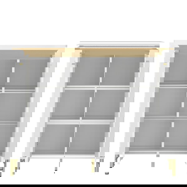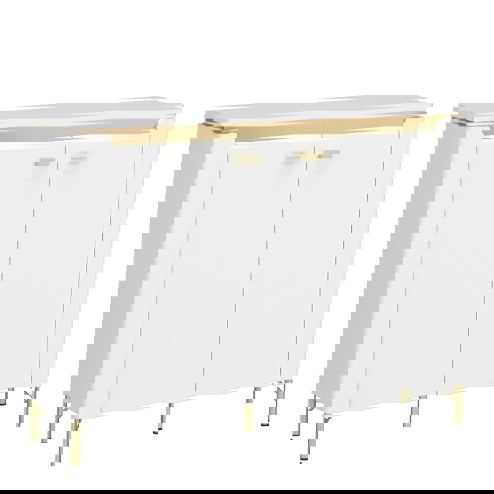 The Lazio 2 Door Sideboard features a high gloss white finish with gold accents, offering luxury and modern design. With LED lighting and ample storage, it’s a stylish addition.