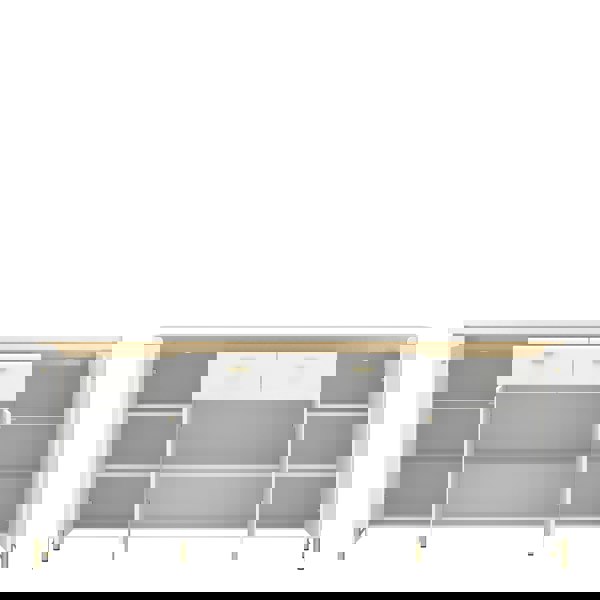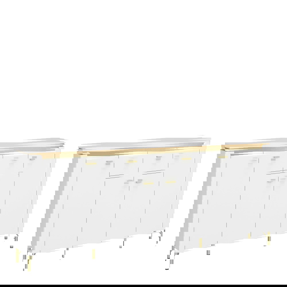 The Lazio 4 Door 2 Drawer Sideboard combines style and function with a high gloss finish, gold accents, and LED lighting. Perfect for chic, modern, or glamorous interiors.