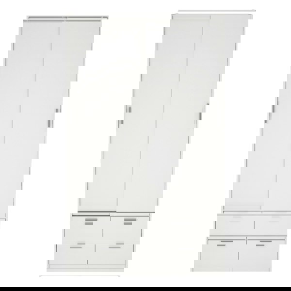 This 2 door sliding wardrobe, featuring 2 drawers is perfect for organising clothes and belongings in a convenient way. The generous sized drawers provides ample space for any type of clothes. Inside the wardrobe is a hanging rail and space for small fabric cubes which is perfect for organising accessories or shoes.