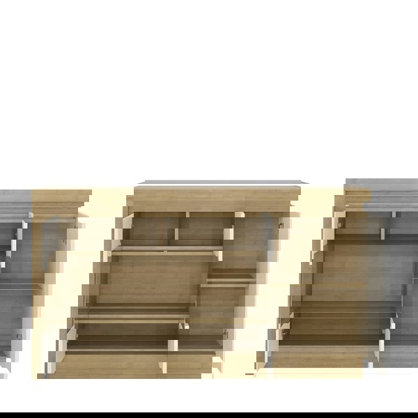 3 door glazed sideboard (including LED lighting) in Riviera Oak/White High Gloss. 3 door geometric designed sideboard, with a smoky glazed area to show of your family treasures. Includes concealed lighting arrangement. A high quality collection in a ultra modern design - with each item complementing each other.