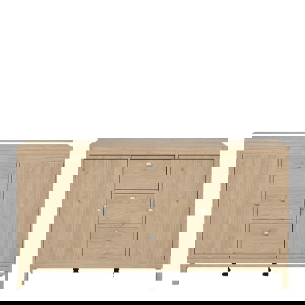 Featuring a Jackson Hickory Oak effect finish, the Madrid sideboard offers ample storage with two doors and three spacious drawers. The drawers are equipped with metal glide runners for smooth operation, and ssleek metal handles add a touch of modern sophistication. Combining style and functionality, the Madrid Sideboard is a perfect addition to any contemporary home.