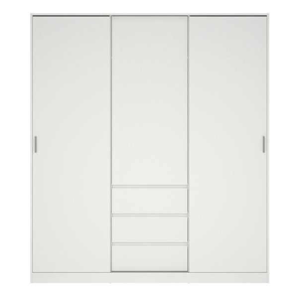 The Naia Wardrobe blends minimalist design with practical storage solutions. It includes two sliding doors, a hinged door, two clothing rails, two adjustable shelves, three fixed shelves, and three drawers. Whether you prefer to hang or fold your clothes, this wardrobe accommodates all your storage needs.