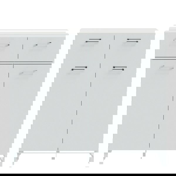 Enhance your space with the Sali 2 Door 2 Drawer Chest in Light Grey. Modern design, solid black metal handles, durable ABS edging, and a soft-closing system for added comfort.