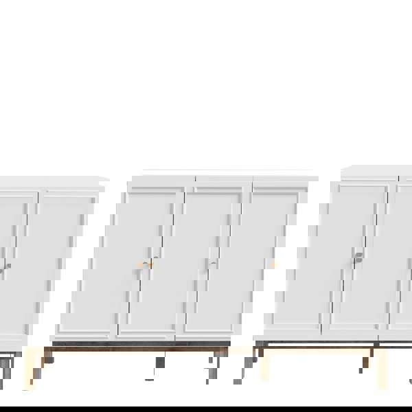Enhance your home with the Wensley 3 Door 1 Drawer Sideboard in Light Grey and Oak. Modern design, full-extension drawer slides, and chic wooden knob handles.