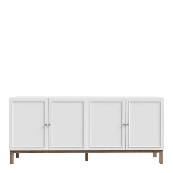 Upgrade your decor with the Wensley 4 Door 1 Drawer Sideboard in Light Grey and Oak. Modern design, full-extension drawer slides, and elegant wooden knob handles.