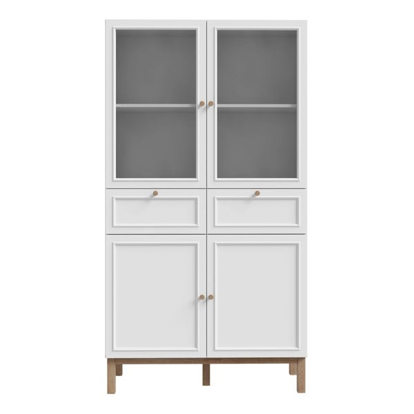 Showcase your collection with the Wensley Display Cabinet in Light Grey and Oak. Modern design, safety toughened glass, optional LED lighting, and soft-closing system.