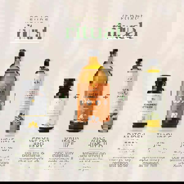From Fushi, the Adaptogen Energy Blend is a herbal and vitamin capsule supplement designed to support an energy-boosting yet relaxing routine as part of everyday use. This high-strength formula combines KSM-66 Ashwagandha Extract with a considered mix of medicinal mushrooms and botanicals, including Cordyceps, Chaga, Rhodiola and Maca, alongside Vitamin B12.