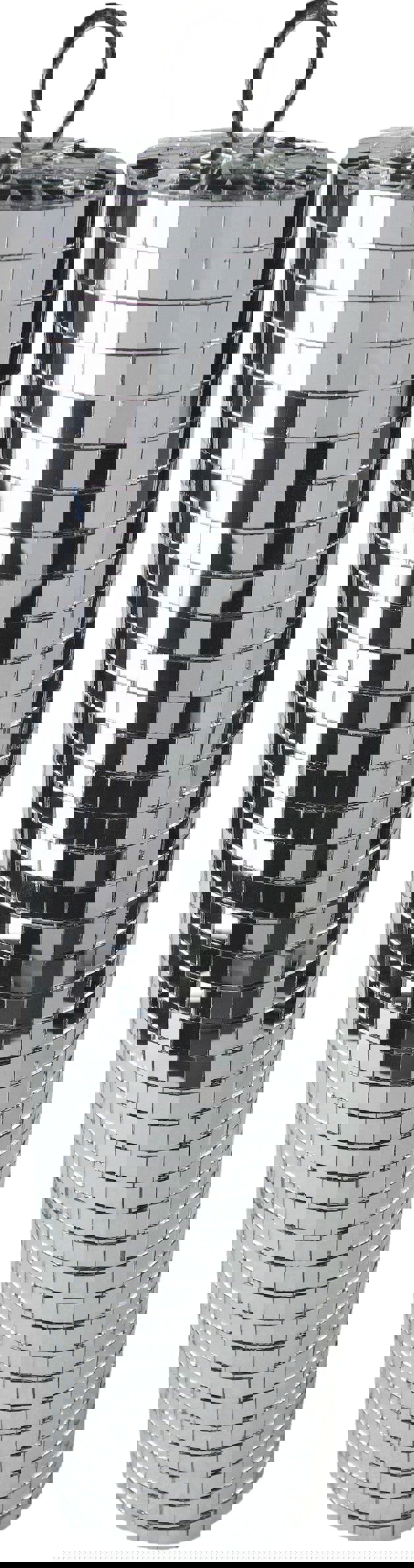 A lightweight mirror cylinder, which creates a sparkling, shimmering light extravaganza adding an authentic disco atmosphere to parties, barbecues, dances, (etc) when a spot light is shined at the cylinder