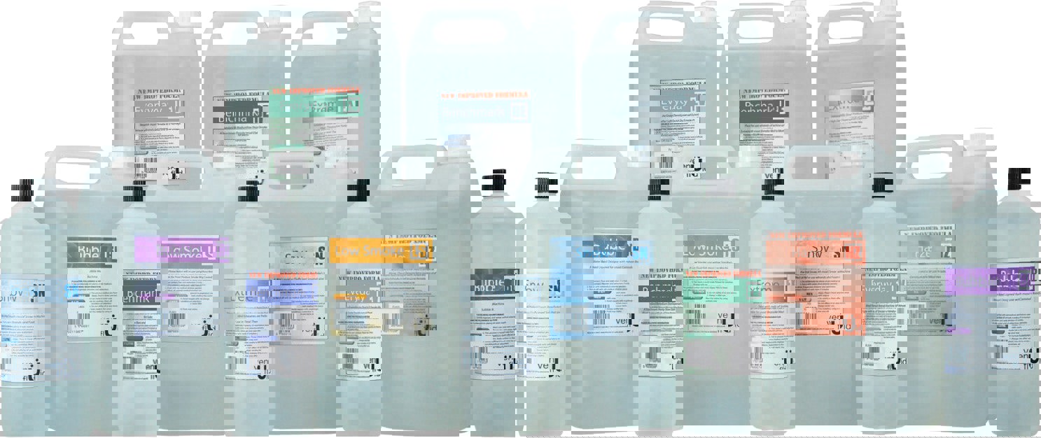 A water based liquid producing fluffy foam based snowflakes that give the effect of real snow