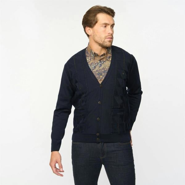 This men’s fancy cardigan from Gabicci comes in a classic navy colourway with heritage-inspired styling and refined detail. Made from a 50% wool and 50% acrylic blend, it works as a smart layering piece for everyday wear.