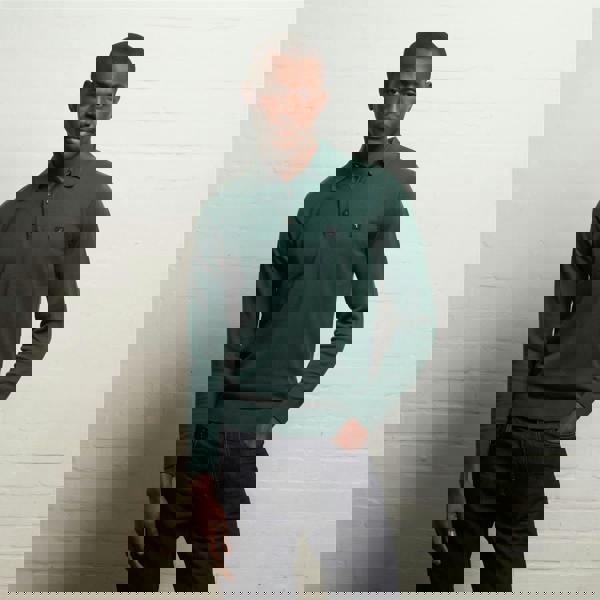 This men’s long sleeve polo has a plain knitted finish and a clean, understated look for everyday wear. It fastens with a three-button placket for a simple, classic front.