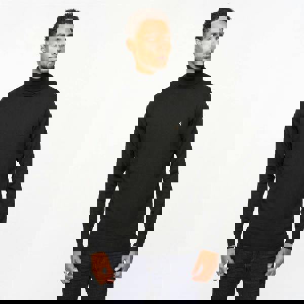 Gabicci Vintage Ricardo is a long sleeve roll neck knit in black with a plain knitted finish. The fine-gauge construction keeps the look clean and streamlined, making it a practical option for layering under a coat or jacket. Ribbed cuffs and a ribbed hem provide a neat edge, while a signature emblem adds a subtle branded detail.