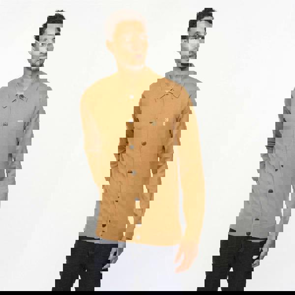 This long sleeve polo from Gabicci Vintage is knitted in a plain construction and finished in nutmeg. A button-thru front keeps the look clean and traditional, while the ribbed collar and ribbed cuffs add a structured edge.