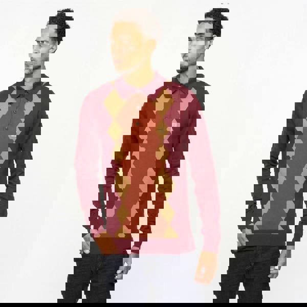 This long sleeve polo from Gabicci Vintage is knitted in a fine-gauge knit for a clean, structured finish. Shown in mulberry, it is completed with a three-button placket and ribbed detailing at the collar and cuffs.