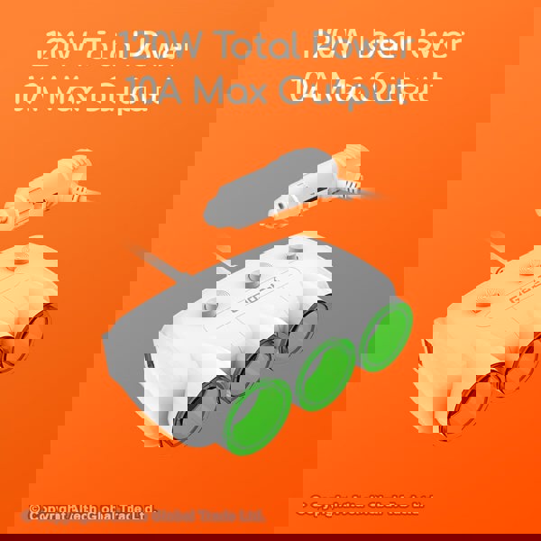 The Gadjet Triple Splitter Switch boasts an impressive total power of 120W and a maximum output of 10A, making it the perfect solution for charging multiple devices simultaneously while on the road.