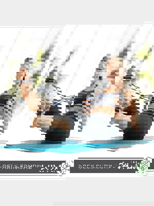 Gaiam's CorePlus Reformer mimics the resistance action of a Pilates reformer using lightweight resistance bands joined in an X-shape. Get a dynamic resistance workout that tones, strengthens, and stretches your entire body in the gym or comfort of your own home—no bulky equipment or trip to a Pilates studio required.
