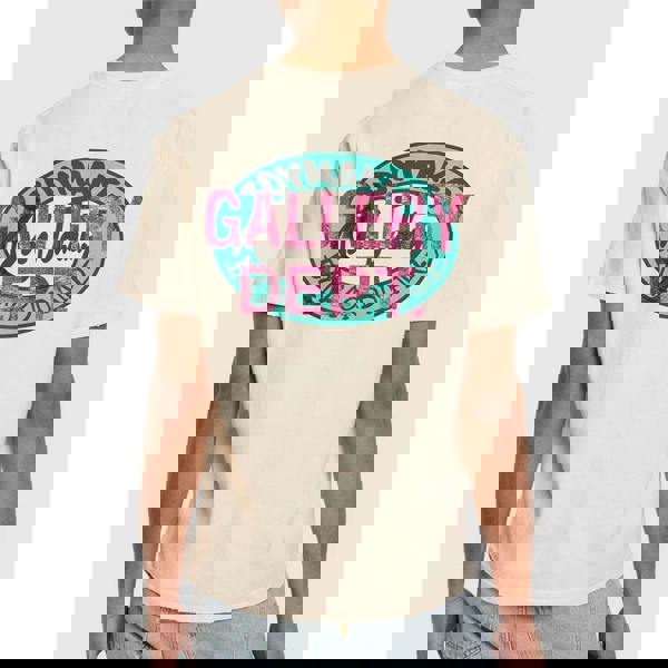 Gallery Dept. 's Dead Batteries T-shirt in Antique White showcases distinctive pop art-inspired graphics, featuring a tearful eye and the phrase "My batteries died!" This crewneck, created in collaboration with LA retailer Doc Johnson for SS23, is made from soft cotton jersey, ensuring comfort and durability. Its unique design and quality fabric make it a standout piece for those who appreciate artful streetwear with a refined edge
