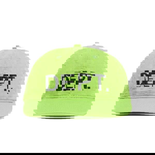 The Gallery Dept DEPT. Embroidered Logo Cap in Flo Green combines bold style with expert craftsmanship. Featuring a vibrant Flo Green silhouette, this cap is detailed with thick embroidery showcasing the iconic DEPT. logotype. Its snap closure ensures a customizable fit, while the flat reinforced brim adds structure and durability. Perfect for those seeking a statement accessory with refined detailing