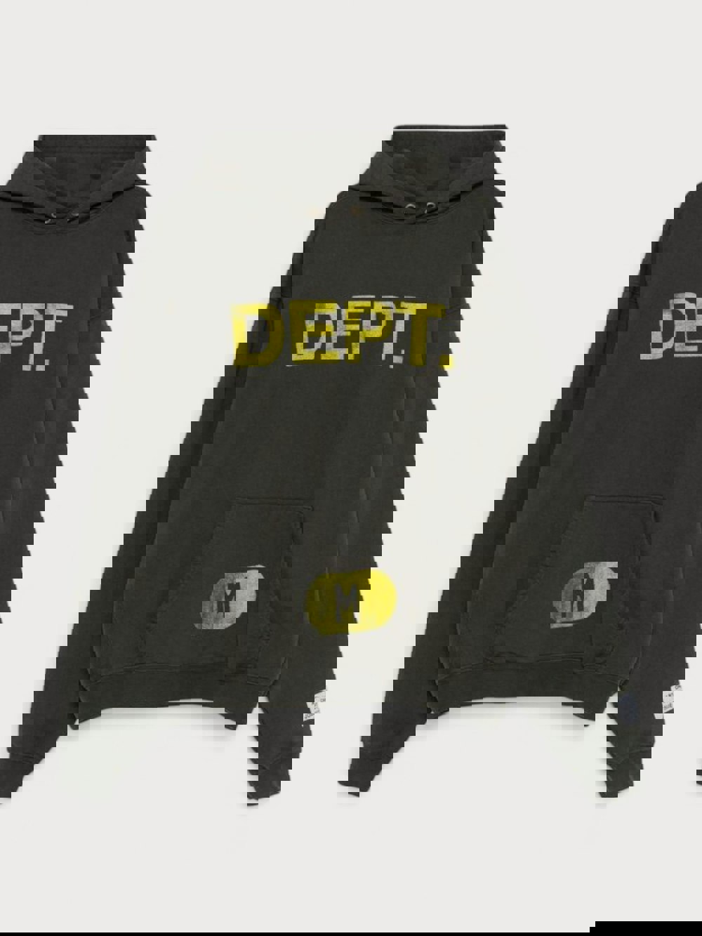 The Gallery Dept. Size Logo Hoodie in black combines streetwear edge with comfortable fit. Crafted from premium materials, this hoodie features the iconic Gallery Dept. logo prominently displayed, offering a bold style statement. Its relaxed silhouette ensures easy layering and all-day comfort, making it a versatile essential for any wardrobe.