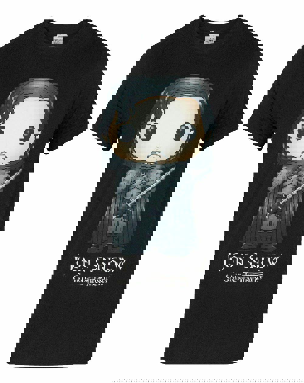 The design across the front of the t-shirt sees the Lord Commander of the Nights Watch, Jon Snow, re-imagined in the adorable Funko Pop style