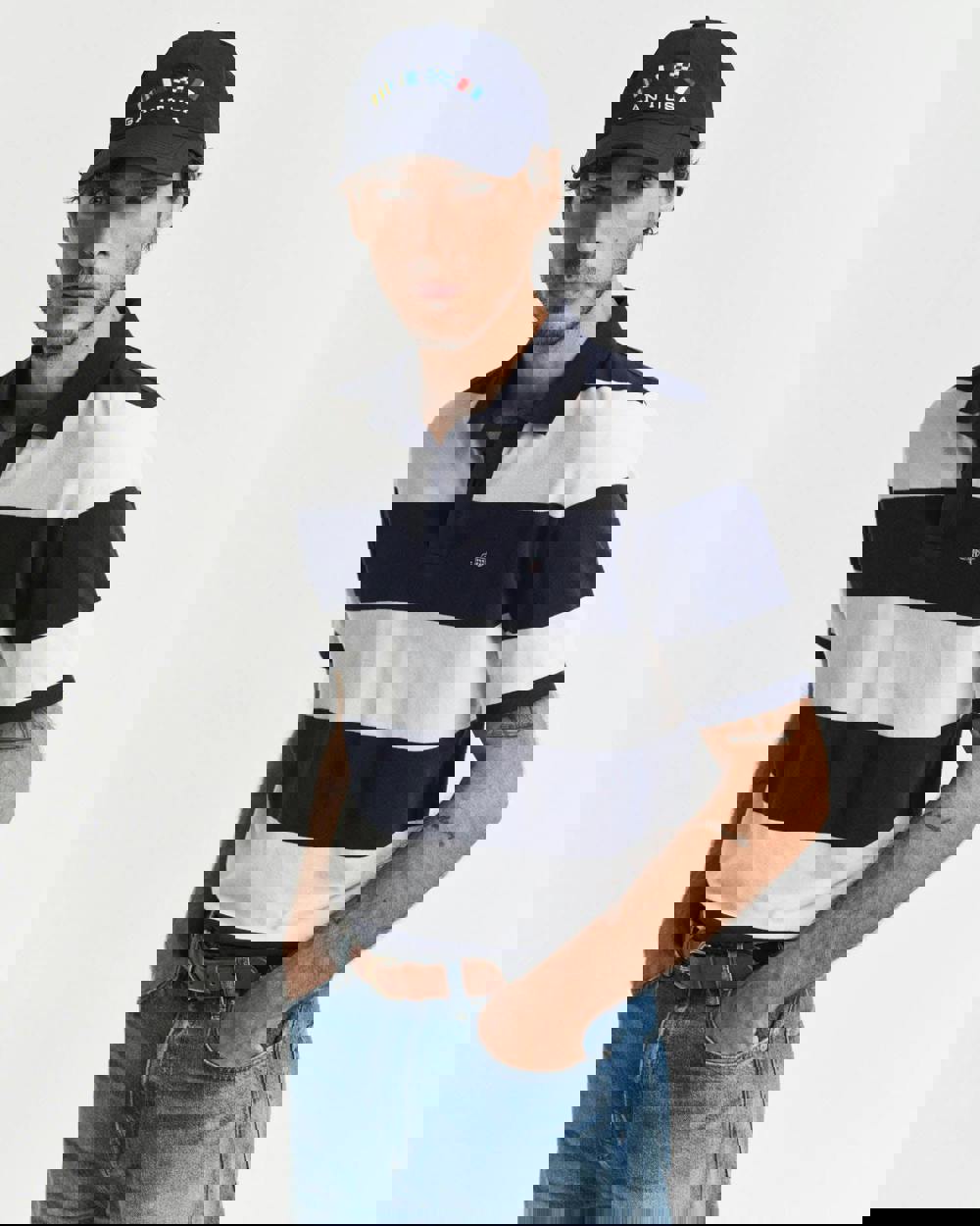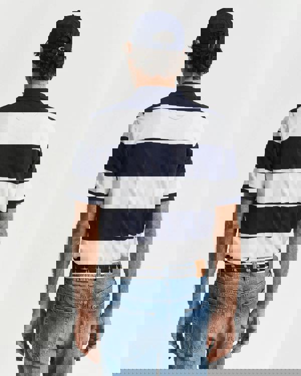 Made from soft 100% cotton, this block-striped piqué polo shirt is a timeless addition to your wardrobe. With a regular fit, it features a classic polo collar, a two-button placket, and the iconic Gant shield logo embroidered at the chest for a signature touch.