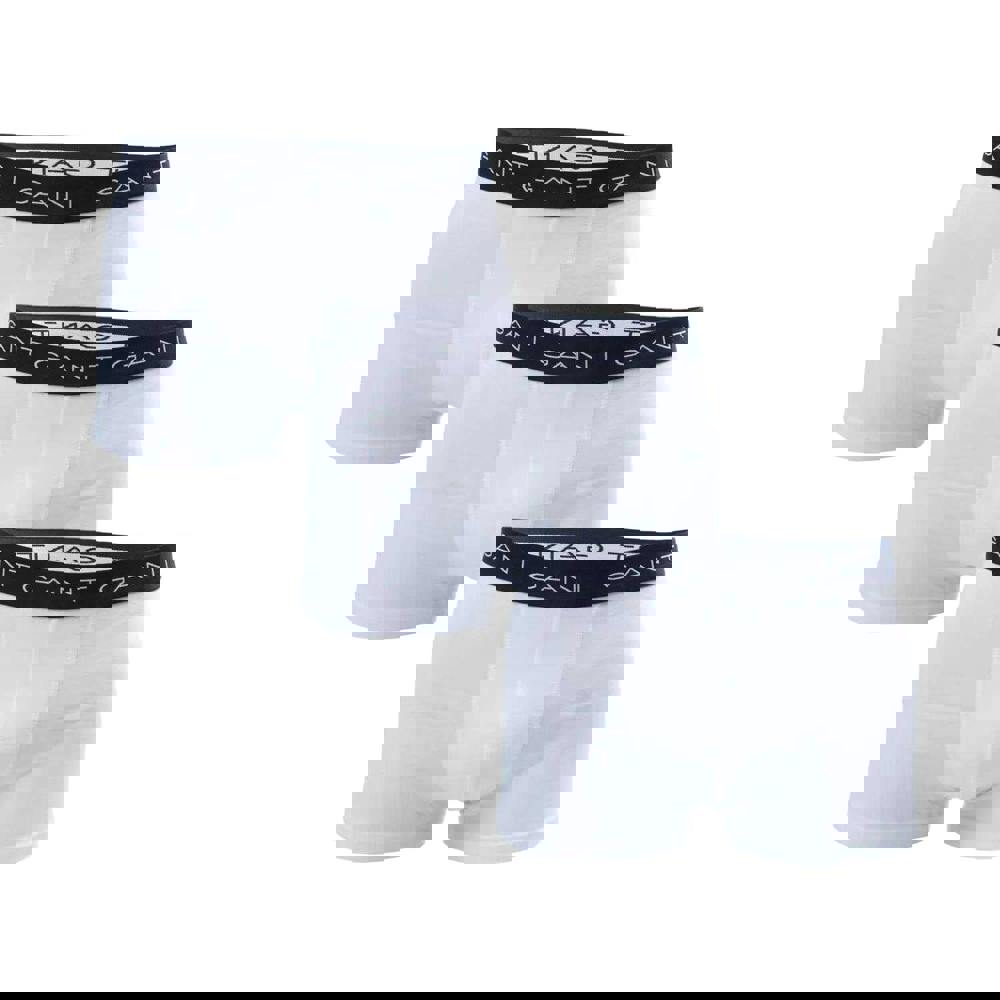 This pack of three men’s boxer shorts from Gant comes in white and is presented boxed. Made from cotton jersey with stretch, they offer a slim fit and a short length. The design is finished with contrast detailing and a repeat logo for a clean, branded look.