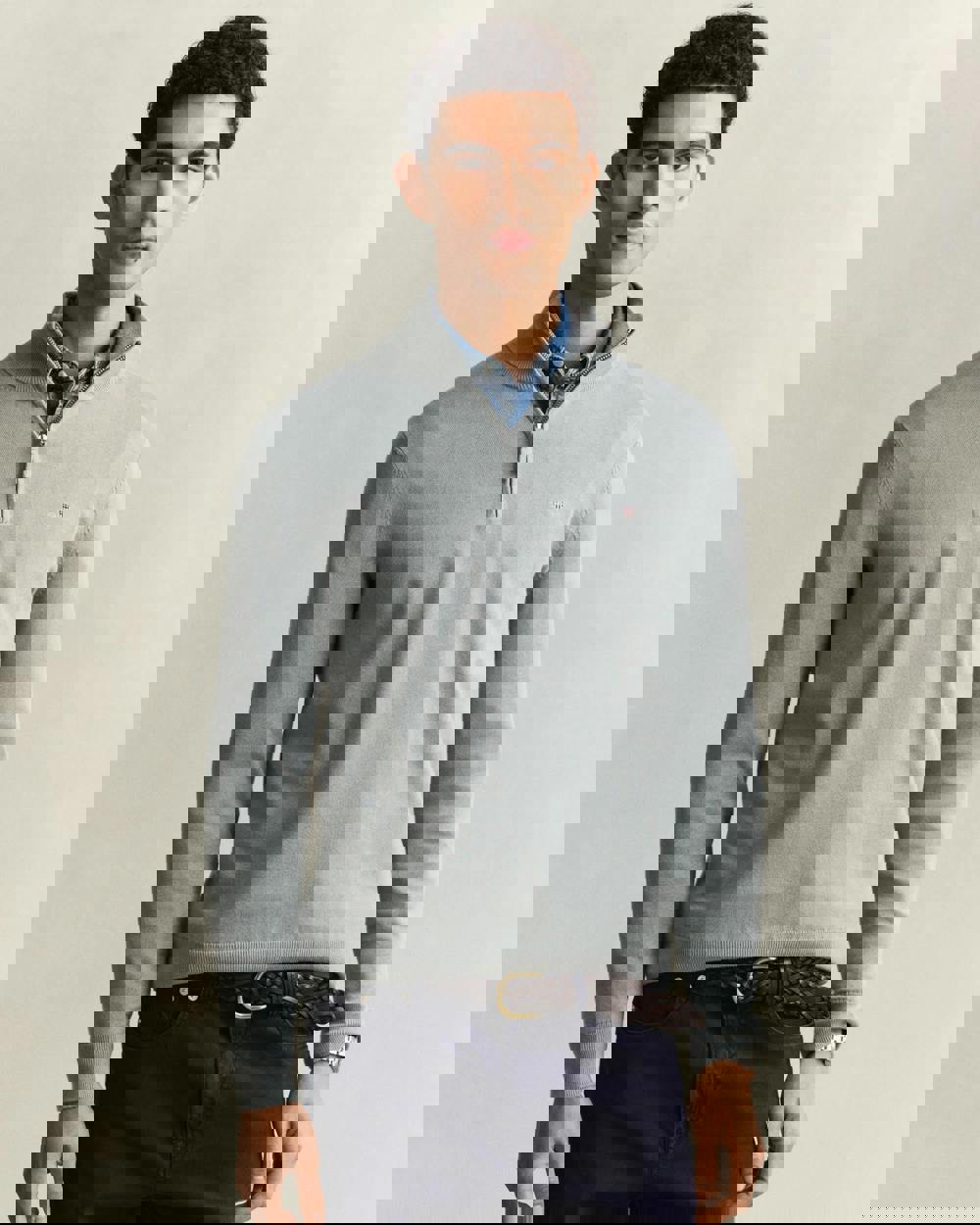 Made from cotton and tailored to a regular fit, this sweater boasts a half-zip collar, ribbed detailing, and an embroidered Gant shield graphic on the chest.