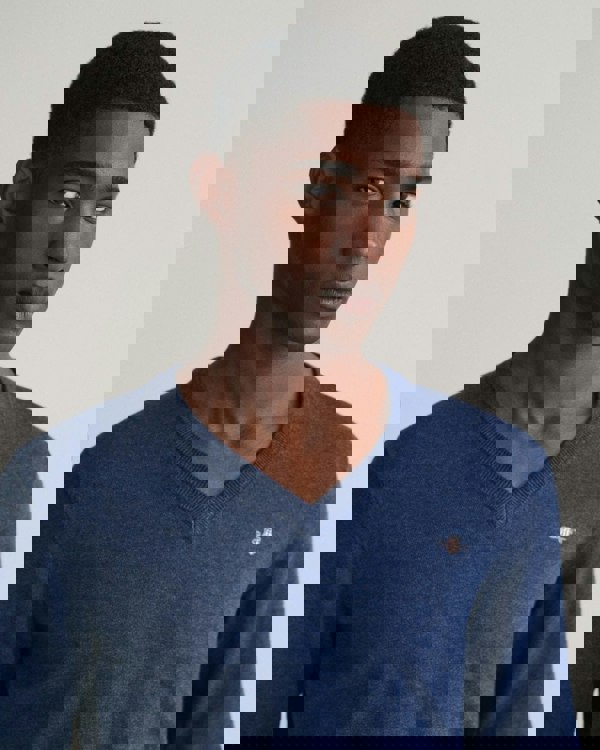GANT Mens Classic Cotton V-Neck Jumper in 902 Dark Jeansblue Melange