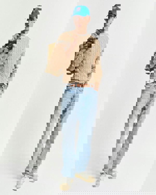 A preppy piece for any modern wardrobe, this GANT sweater is designed with traditional cable-knitting. Crafted from 100% cotton, it has a regular fit with a classic crew neck, ribbed detailing at the hem and cuffs, and a GANT shield graphic embroidered at the chest. Style with denim and tailoring.