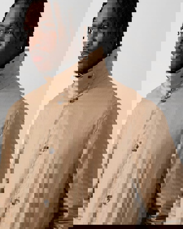 Crafted entirely from cotton, this car coat is a must-have outerwear piece. With a regular fit and a length that finishes just above the knees, the design is unconstructed and showcases a center closure at the front with 5 buttons. Detailed with welt side pockets, the coat also features a vent opening at the back center, a locker loop, and two interior pockets for added convenience.