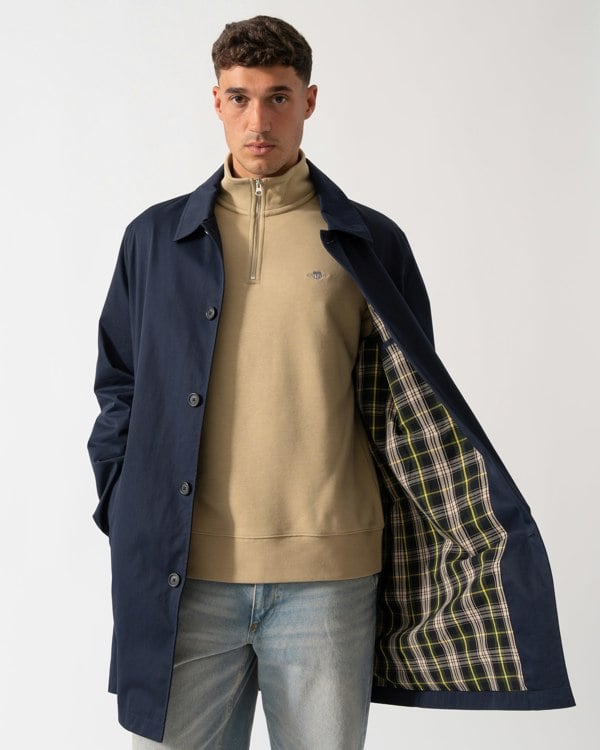 Cut for everyday outerwear, the GANT Mens Cotton Car Coat comes in 433 evening blue with a regular fit and a length that sits just above the knee. Made from a cotton-blend shell with a cotton lining, it fastens with five buttons at the front for a clean, classic finish. Practical details include welt side pockets, a centre-back vent and a locker loop, with two interior pockets to keep essentials close.