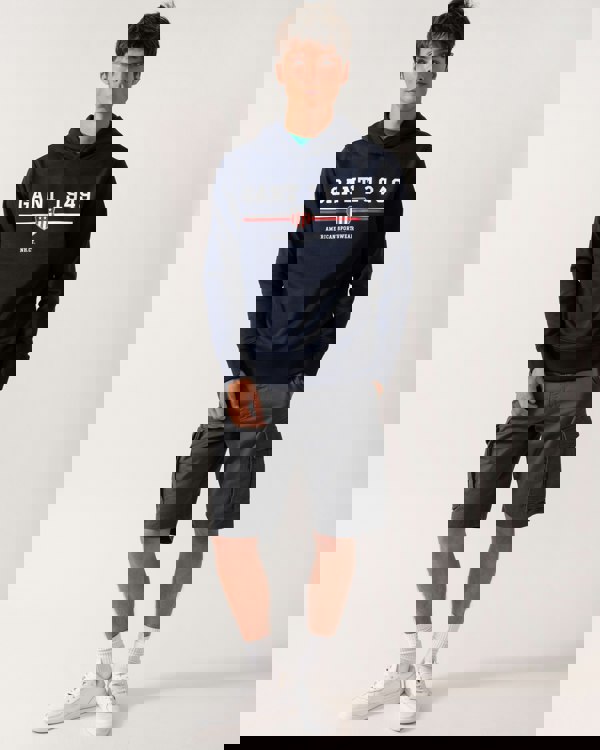 Discover designer men's hoodies with GANT's Men's Graphic Pullover Hoodie in 433 Evening Blue