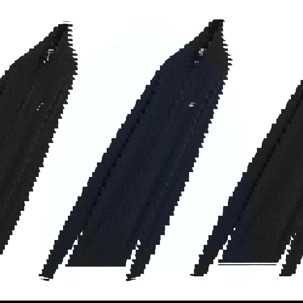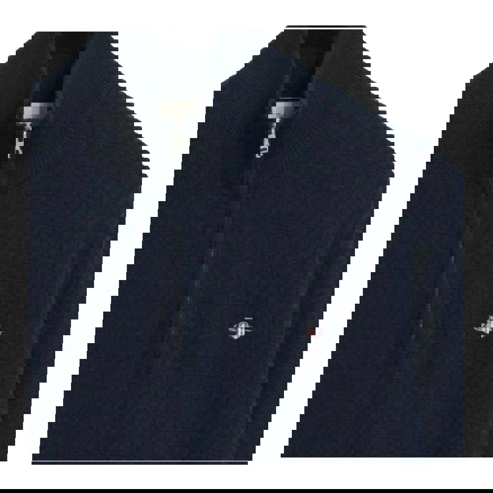 This micro textured sweatshirt is made from a blend of 51% organic cotton and 49% cotton, with a knitted construction. A logo detail adds a clean finish, while the standing ribbed collar and half zip fastening create a practical neckline for everyday wear.