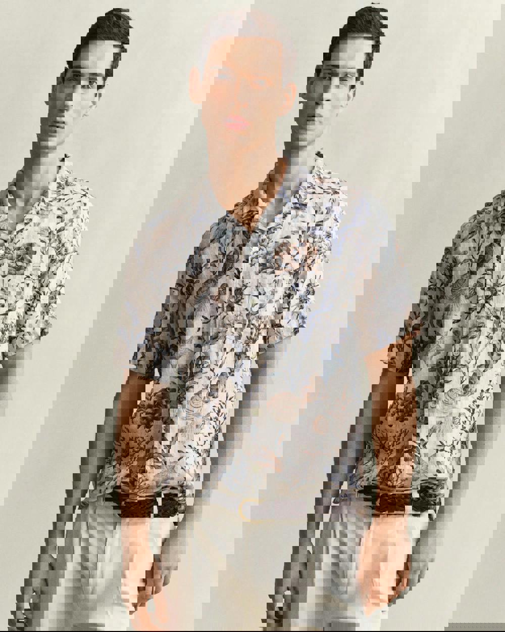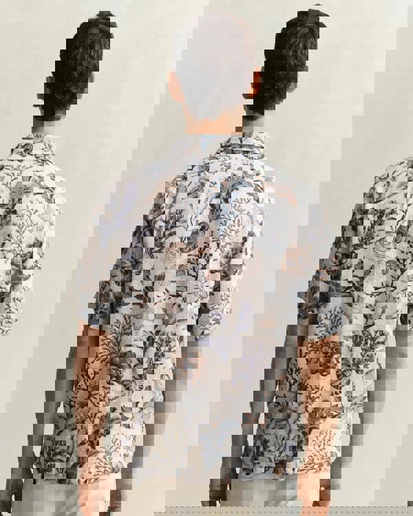 Warm-weather staples take a refined turn with the GANT Mens Regular Fit AOP Camp Collar Shirt in 200 oat beige. Made from 100% linen, it brings a breathable feel to everyday dressing, finished with an in-house designed all-over print. A camp collar keeps the look relaxed, while the regular fit offers an easy, clean silhouette.