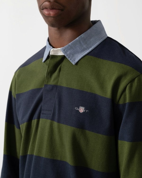 Crafted from 100% cotton, this striped rugger boasts a small-scale GANT shield graphic embroidered at the chest. Designed with a regular fit, the rugger features a twill collar and a classic three-button placket, giving it a timeless feel.