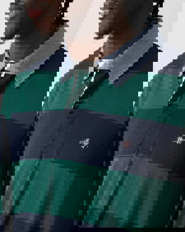 Crafted from 100% cotton, this striped rugger boasts a small-scale GANT shield graphic embroidered at the chest. Designed with a regular fit, the rugger features a twill collar and a classic three-button placket, giving it a timeless feel.