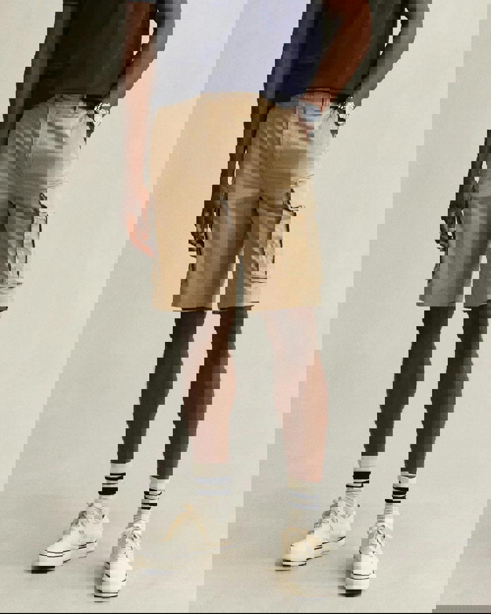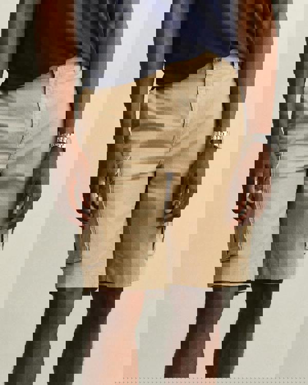 Designed for everyday wear, these cargo shorts are made from an organic cotton blend with a touch of comfort stretch. They have a regular fit with a mid-rise waist and sit just above the knee. Details include a zip fly, belt loops, branded buttons, and multiple pockets in classic cargo style.